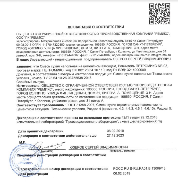 ПЕТРОМИКС NF-03 имеет высокую пластичность и легко наносится на поверхность, образуя гладкое и ровное основание. Он обладает отличной самовыравнивающейся способностью, что позволяет легко и быстро устранить любые неровности и недостатки на поверхности.